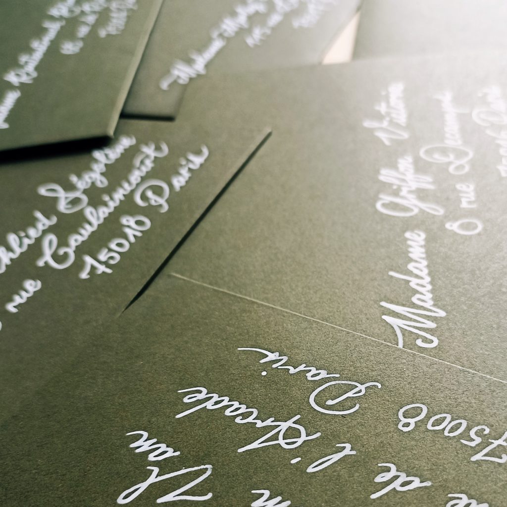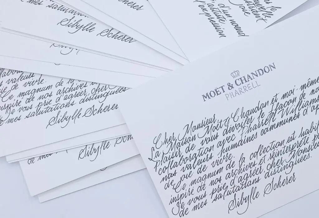 Portfolio Portfolio: réalisations & pièces d'exception Gravure sur flacon de parfum. Dior Carte de vœux personnelles 2026. Embossage manuel, calligraphie à chaud et calligraphie au stylo-plume. Papeterie Elopement de Sandra et Etienne à Majorque. Photo Nassira Chikhi Menus calligraphiés à la plume. Automobile Club de France Invitations et enveloppes. Le Lausanne Palace Calligraphie au feutre doré sur boule de Noël. Défilé Tamara Ralph. Calligraphie à la plume et encre Or. Invitations et enveloppes. Evenement Aigle. Personnalisation de foulards au feutre. Gravure sur céramique. Marque-pages calligraphiés au feutre. Evénement Hachette. Personnalisation ruban avec calligraphie à chaud. Evènement Pâques. Œufs d’oie gravés. Louis Vuitton Cartes de remerciements. Moët et Chandon Marque-place calligraphié à la plume. Evénement Influence Caudalie. Gravure et encre bleue Défilé Haute-Couture Jean Paul Gaultier. Invitations et Enveloppes. Message et marque-places pou événement Yves Saint-Laurent Messages calligraphiés à la plume et encre Or. Vacheron constantin Papeterie de mariage thème « Seigneur des Anneaux ». Photo: Diane Souazé Papeterie de mariage thème « Seigneur des Anneaux ». Photo: Diane Souazé Marque-places calligraphiés à la plume. Commission gravure sur pinceaux de maquillage. Gravure sur flacon de de parfum Serge Lutens. Noël à la Vallée Village Calligraphie au feutre blanc sur boule de Noël. Vitrines de Noël éphémères au feutre. La Station Service Batignolles Evenement Hublot. Messages calligraphiés à chaud sur rubans. Evénement Influence Maison Perrier. Calligraphie à la plume sur étiquettes de panier pic-nic. Conception et réalisation graphique d’ardoises. La Station Service Batignolles Personnalisation au feutre doré sur bouteille de Champagne. Hôtel Ritz Gravure sur parfum de voyage en métal. Kilian Calligraphie au feutre sur boules de billard. Kilian Gravure sur flacon de parfum. Antinomie Evenement Influence Boss. Personnalisation au feutre de veste en cuir. Evènement Influence Boss. Personnalisation de feutres. Calligraphie au feutre noir sur boule de Noël. Gravure sur flacon de parfum. Dior Personnalisation emballages. Boss Rubans calligraphiés à chaud pour l’elopement Emeline et JB.Photo Céline Kopp Papeterie pour elopement d’Emeline et JB.Photo Céline Koppwww.celeyephotographies.com Papeterie pour elopement au Crépuscule de Célia et Benoit.Photo Céline Kopp Kwww.celeyephotographies.com Papeterie de mariage thème « Halloween ». Photo: Ninon Duret Gravure sur gourde en métal 24Bottles. Evènement Influence Jimmy Choo. Calligraphie au feutre sur carton satiné. Défilé Haute-Couture Amiri Invitations et enveloppes Evènement Influence Jimmy Choo. Calligraphie au feutre sur papier texturé. Commission « Line ». Alphabet Comission « Life is straight lines and angles ». Calligraphies de Noel à la plume. Acitvation de Noel. La Vallée Village. Gravure sur flacon de parfum. Dior Gravure sur Rouge à lèvres. Dior Gravure sur cabochon. Valentino Marque-pages calligraphiés à chaud sans foil. Evènement Presse Berluti. Papeterie de mariage thème « Halloween ». Photo: Ninon Duret Papeterie de mariage thème « Halloween ». Photo: Ninon Duret Papeterie de mariage thème « Halloween ». Photo: Ninon Duret Papeterie pour l’Elopement au Crépuscule de Célia et Benoit. Photo: Aurélie Blanche www.vibrant-feelings.com Papeterie de mariage de Sabine et Gregory. Livre d’Or. Photo Aurélie Blanche www.vibrant-feelings.com Lettering Enveloppes calligraphiées au feutre bleu. Alphabet. Messages au feutre doré et relief noir. Fendi Personnalisation au feutre sur emballage texturé. Rituals… Personnalisation de porte-Cartes Tory Burch. Noël à la Vallée Village Gravure sur flacon. Lancôme Message calligraphié au feutre. Armani/Privé Evenement Presse Brunello Cucinelli. Etiquettes calligraphiées à la plume. Calligrammes en collaboration avec l’atelier d’Art Grafima. Chanel Haute-Joaillerie Lettre calligraphiée à la plume et encre noire. Gravure sur flacon de parfum. Dior Gravure sur flacon de parfum. Diptyque Commission gravure de flacon de parfum. Gravure sur flacon de parfum. Guerlain Marque-Places calligraphiés au feutre. Enveloppes colorées calligraphiées au feutre et encre blanche. Commission « Hope » Feutre et plume Alphabet. Commission « Wicca celebrations » Commission « You are brave Skully » Commission Lettering au feutre Commission gravure bouteille teintée, calligraphie moderne. Gravure sur médaille en métal. Lancôme initier une collaboration